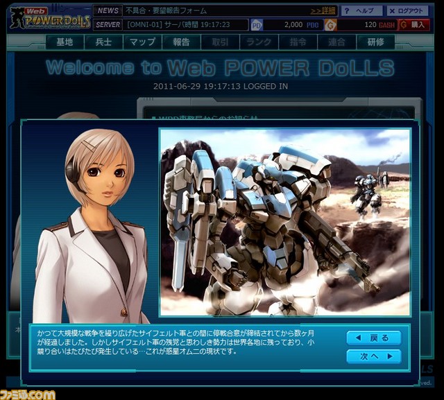(中国机战联盟7月4日讯,转载请注明)本站之前报道的由Gamania运营的工画堂代表作《特勤机甲队》网络版《Web特勤机甲队》,β公测将于7月7日~7月19日进行。参加公测的报名时间截至明天7月5日中午,共募集测试玩家5000名。应募成功并满足一定条件的玩家可以获得限定式样机体Power Loader X5,在以后的正式游戏中也可以继续使用。报名地址http://pd.gamania.co.jp/,有兴趣的朋友可以试试~
